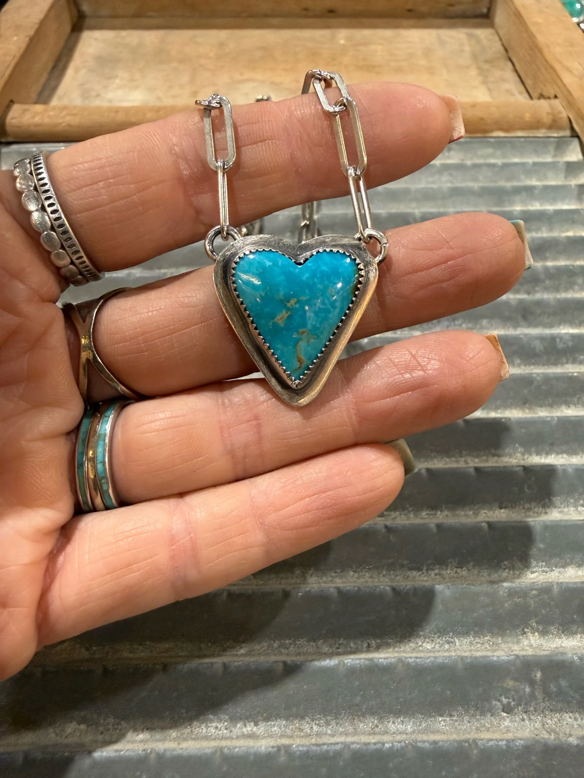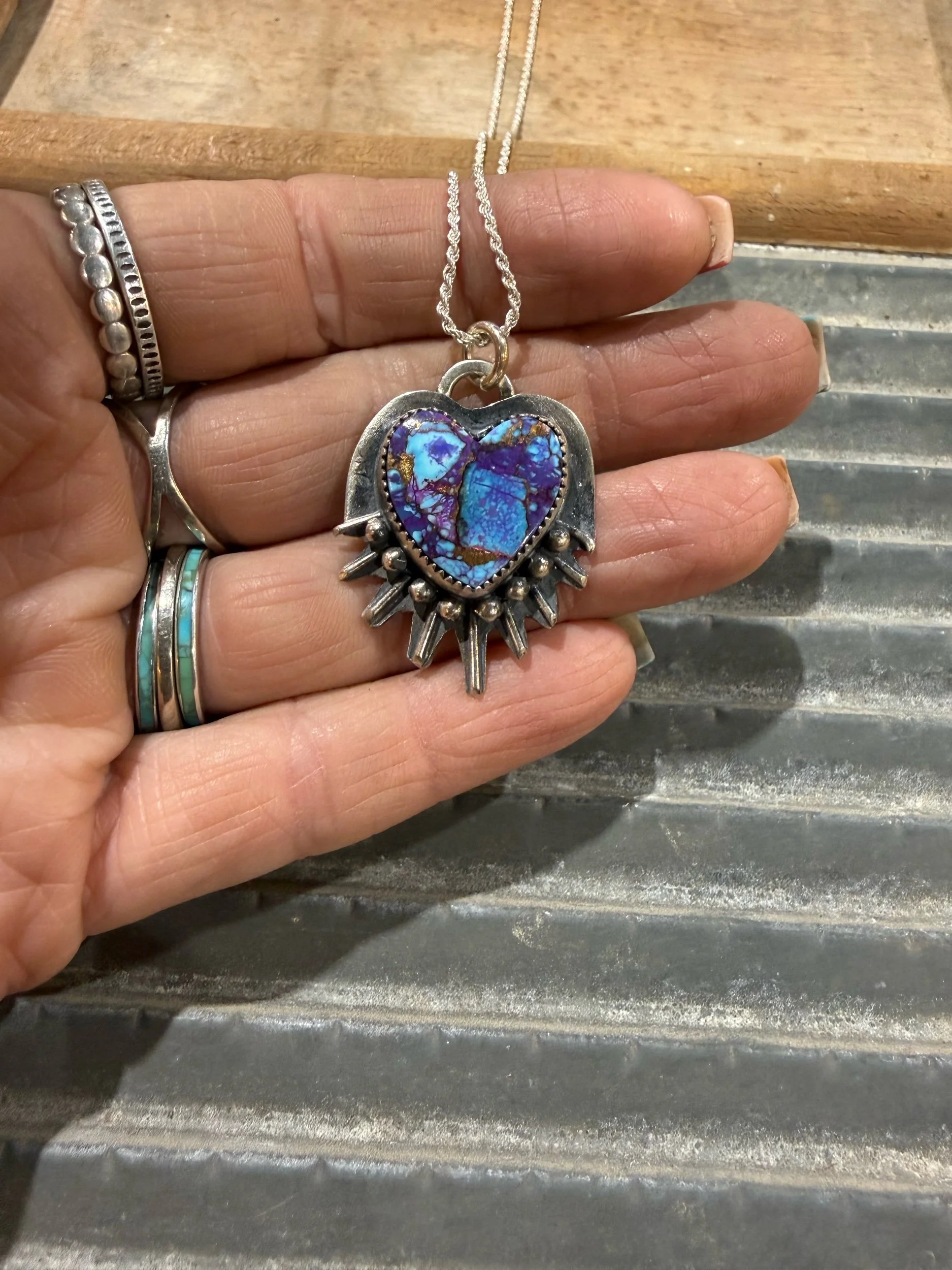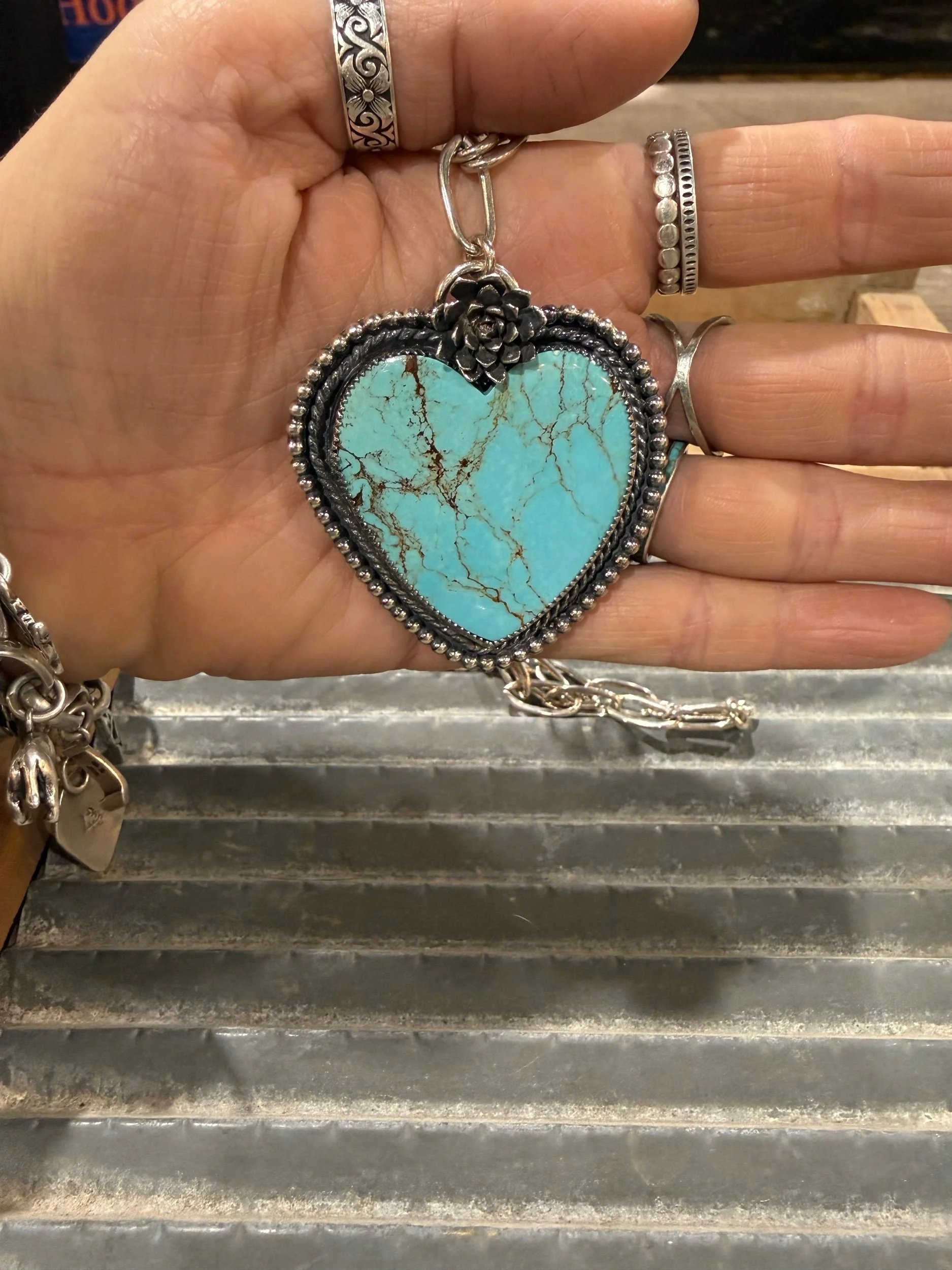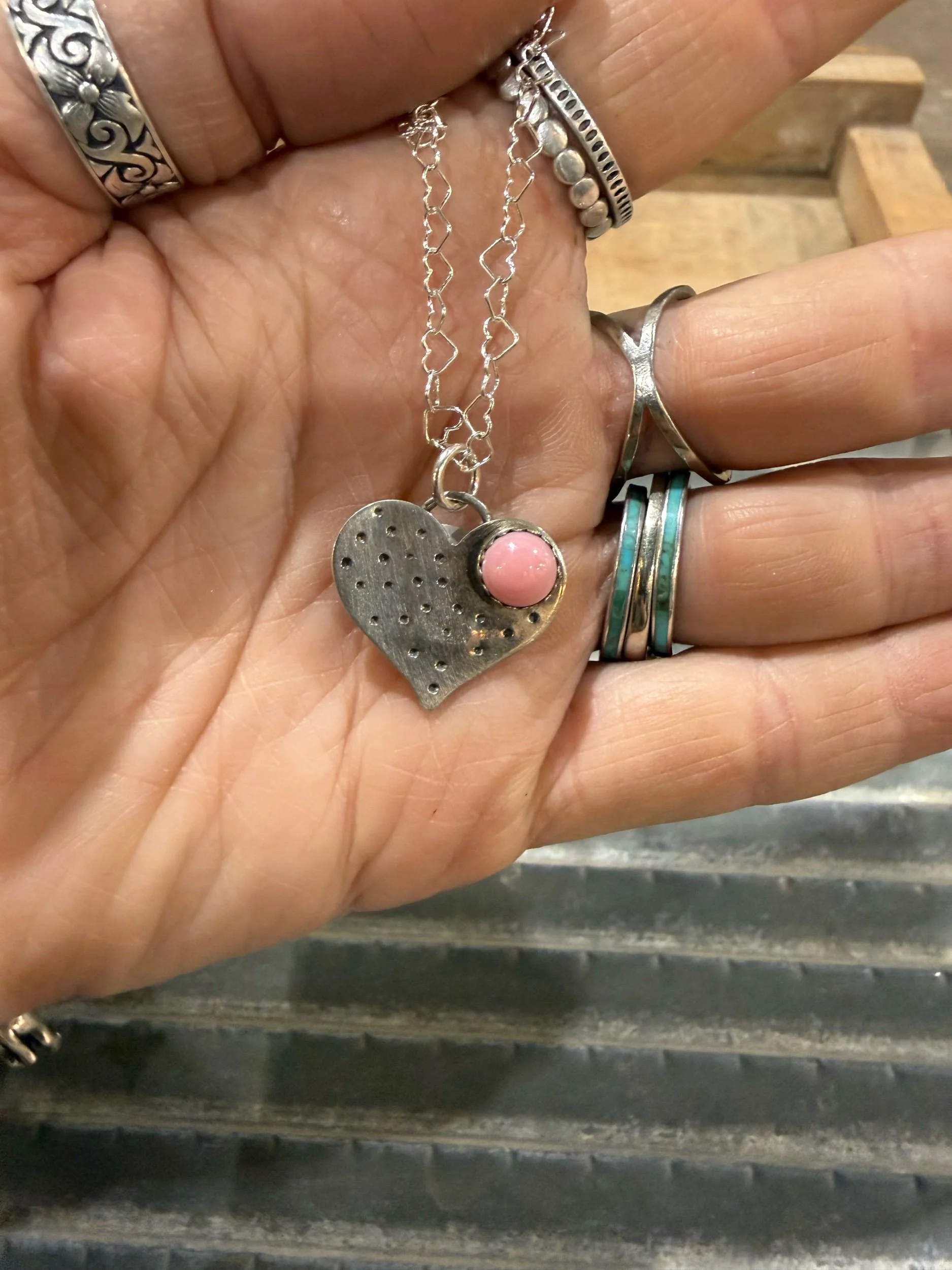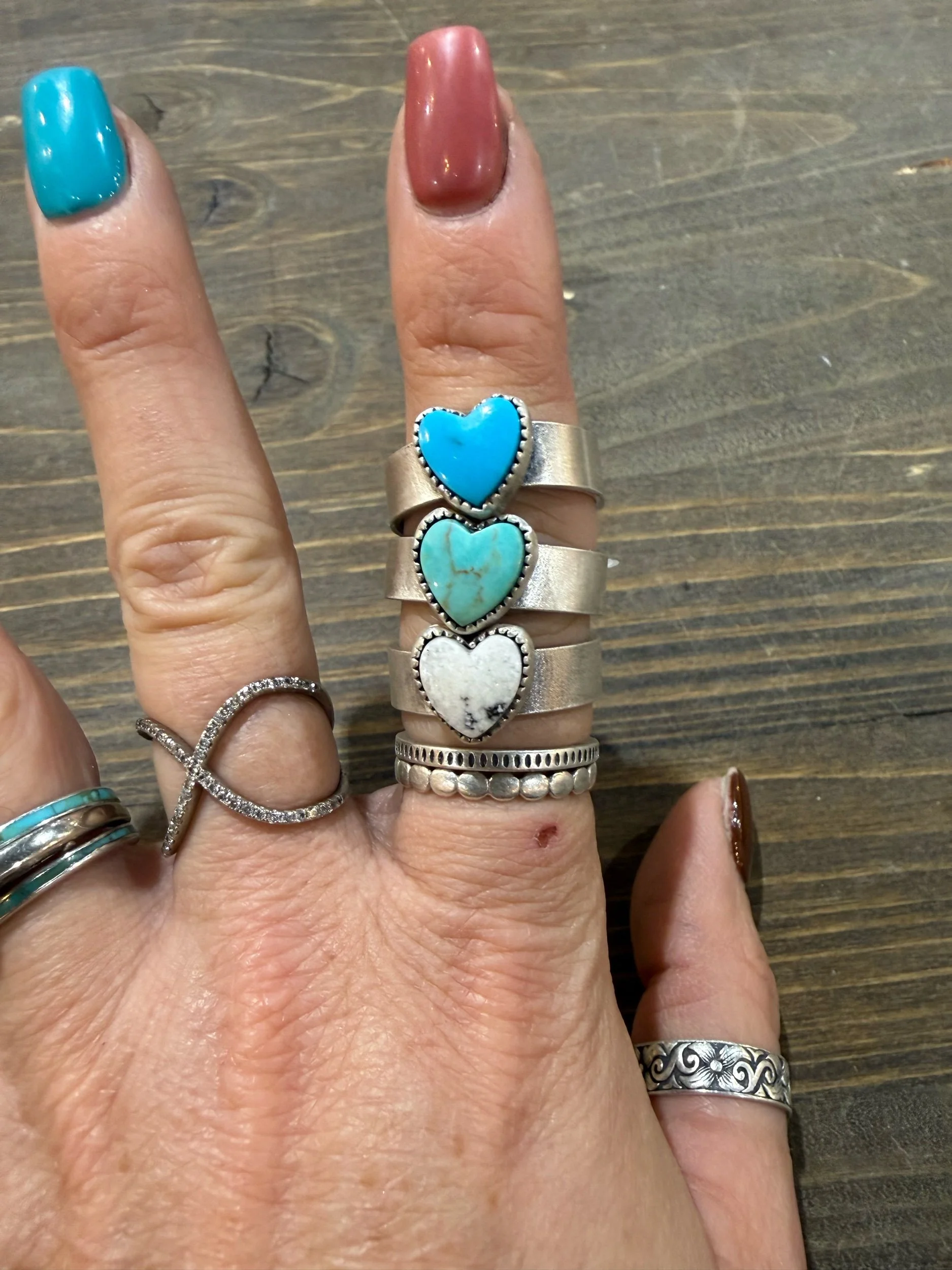 Shop Categories: Select a Category Hot off the bench Rings Size 6 Rings Size 7 Rings Size 8 Rings Size 9 Rings Size 10 Rings Size 11 & up Rings Mens Rings Necklaces Leather Goods Earrings Hair Accessories Cuffs & Bracelets Sterling Pearls Bolo Curated Collection SALE Gift Card Custom Orders Hot off the bench Rings Necklaces Leather Goods Earrings Hair Accessories Cuffs & Bracelets Sterling Pearls Bolo Curated Collection SALE Gift Card Custom Orders Quick View Earrings for Sommer $290.00 Sold Out Sold Out Added! Quick View Squash repair for Chris $135.00 Sold Out Sold Out Added! Quick View Stones for Kellen $28.00 Sold Out Sold Out Added! Quick View Bracelet for Lesli $280.00 Sold Out Sold Out Added! Quick View Order for Dan $125.00 Sold Out Sold Out Added! Quick View Custom earrings for Jennifer $195.00 Sold Out Sold Out Added! Quick View Single Heart Ring sz 3-12 $25.00 3 4 5 6 7 8 9 10 11 12 Add To Cart Added! Quick View Double Heart Ring sz 4-10 $25.00 4 5 6 7 8 9 10 Add To Cart Added! Quick View Sterling silver eternity heart band sz 4-12 $40.00 4 5 6 7 8 9 10 11 12 Add To Cart Added! Quick View Heart Band sz 6-10 $95.00 6 7 8 9 10 Add To Cart Added! Quick View Pink conch heart $105.00 Add To Cart Added! Quick View Royston Horseshoe Heart $215.00 Add To Cart Added! Quick View Kingman Heart $275.00 Add To Cart Added! Quick View Purple Mohave Heart $215.00 Add To Cart Added! Quick View Pink Conch Heart $165.00 Sold Out Sold Out Added! Quick View Royston Heart Necklace $245.00 Add To Cart Added! Quick View Rosarita Heart Bar Necklace $315.00 Add To Cart Added! Quick View Large Kingman heart $635.00 Add To Cart Added! Quick View Kingman Heart $205.00 Add To Cart Added! Quick View Kingman paw print Heart $245.00 Add To Cart Added! Quick View Royston Ribbon Heart $325.00 Add To Cart Added! Quick View White Buffalo & Kingman Heart rings $135.00 Kingman Blue size 9 Kingman green size 7 Kingman green sz 10 Kingman light blue size 6 Add To Cart Added! Quick View Engraved Sunflower Heart $95.00 Add To Cart Added! Quick View Pink Conch Heart $150.00 Add To Cart Added! Quick View Kingman Heart $190.00 Add To Cart Added! Quick View Horseshoe Wild horse Heart $325.00 Add To Cart Added! Quick View Pilot Mountain Heart $150.00 Add To Cart Added! Quick View Sierra Bella Heart $145.00 Add To Cart Added! Quick View Wild horse Heart $390.00 Add To Cart Added! Quick View Purple Mohave Heart $205.00 Add To Cart Added! Quick View Royston Ribbon Heart $435.00 Add To Cart Added! Quick View Royston Ribbon Heart $530.00 Add To Cart Added! Quick View Sterling silver stamped earrings $205.00 Add To Cart Added! Quick View Sterling silver, dangle earrings $55.00 Add To Cart Added! Quick View Handmade Blossom dangle earrings $195.00 Add To Cart Added! Quick View Navajo Pearl style stretch bracelet from $65.00 Select Size 3mm 4mm 5mm 6mm Add To Cart Added! Quick View 3 Ring Stacking Set- custom from $160.00 View Options Quick View The Rio Cuffs from $210.00 Select Style Style 1 Style 2 Style 3 Style 4 Add To Cart Added! Quick View 8mm Sterling Silver Pearls from $210.00 Select Length 14” 16” Add To Cart Added! Quick View 6mm Sterling Silver Pearls from $140.00 Select Length 14” 16” 18” 20” 22” Add To Cart Added! Quick View 5mm Sterling Silver Pearls from $115.00 Select Length 14” 16” 18” 20” 22” Add To Cart Added! Quick View 4mm Sterling Silver Pearls from $90.00 Select Length 14” 16” 18” 20” 22” Add To Cart Added! Quick View 3mm Sterling Silver Pearls from $65.00 Select Length 14” 16” 18” 20” 20” mix bead Add To Cart Added! Quick View Kingman Stacker from $35.00 Select Size Size 5 Size 6 Size 7 Size 8 Size 9 Size 10 Size 11 Size 12 Add To Cart Added! Quick View Custom Order Spot $100.00 Add To Cart Added! Quick View Mountain Mama Silver Gift Card from $25.00 Select Value $25.00 $50.00 $75.00 $100.00 Purchase Added! Quick View Mama’s necklace - custom $160.00 Add To Cart Added!
