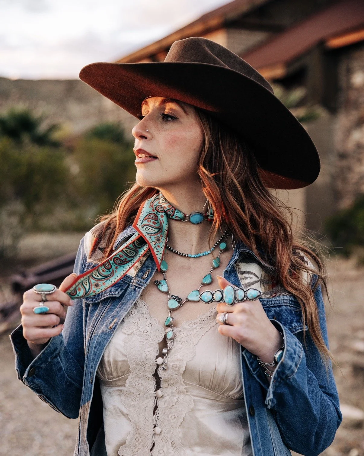Shop › Twilly scarf Image 1 of 4 Image 2 of 4 Image 3 of 4 Image 4 of 4 Twilly scarf $40.00 Style: 1 2 3 4 5 6 7 8 9 10 Add To Cart Added! Reviews Reviewer Name Review Date Star Rating Description Posted on Etsy Product Show More You Might Also Like Quick View Turquoise hair ties from $140.00 Quick View Cap Clips from $110.00 Quick View Hair Rings from $395.00 Quick View The Rio Cuffs from $250.00